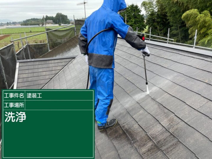 屋根→壁と上から下に洗浄して汚れをきれいにします。