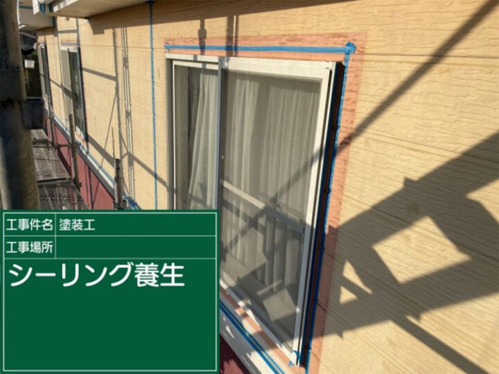 外壁を汚さないようにマスキングテープを貼っていきます。