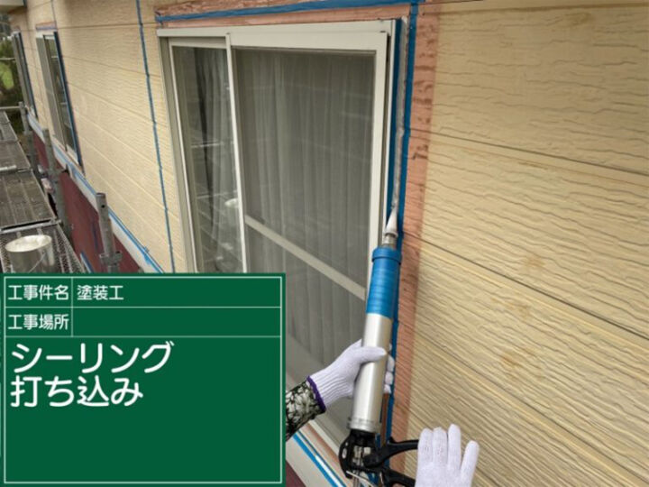 外壁の防水性能を担うコーキングのため、たっぷり充填します。
