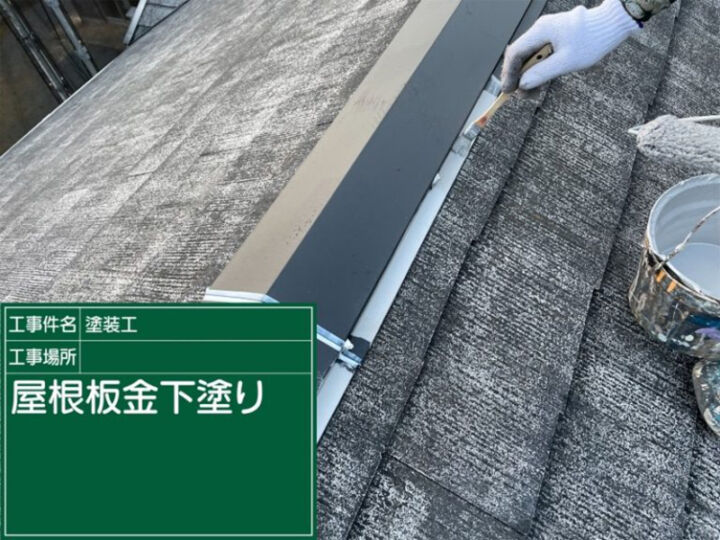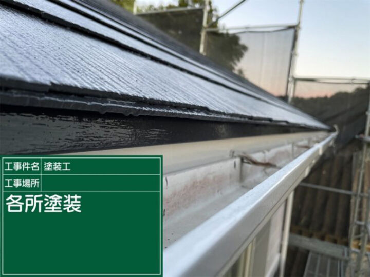 棟板もコロニアル屋根も一緒に塗り替えます。