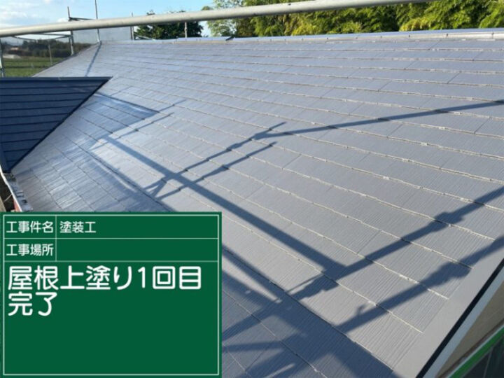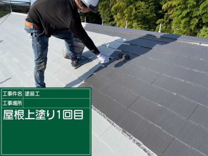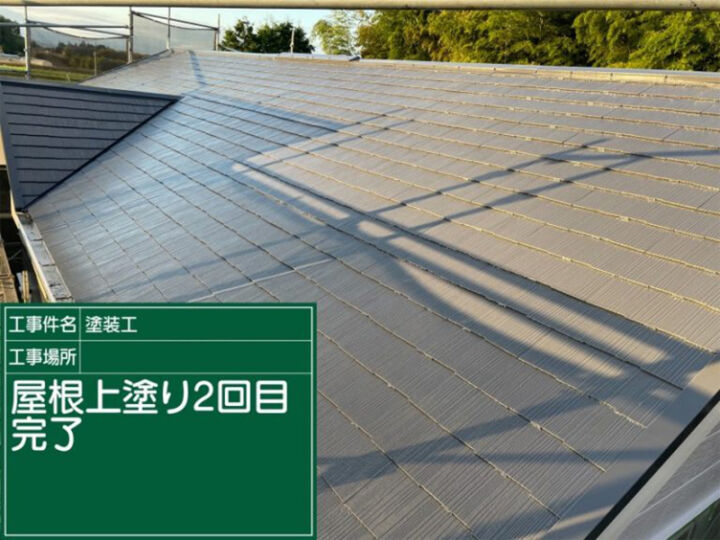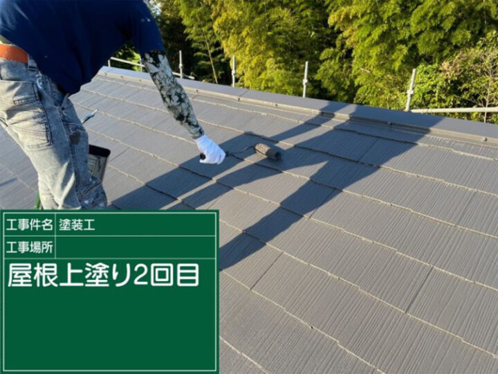 屋根の上塗りにはスーパーシャネツサーモFという遮熱塗料を使用しました。
