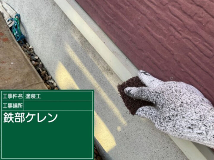 塗装前にサンドペーパーや研磨たわしでケレン処理を行います。