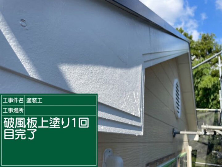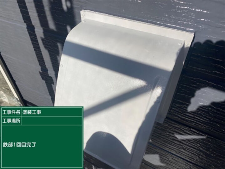 換気フード、庇ともに水切り同様上塗り剤で2回塗っていきます。
