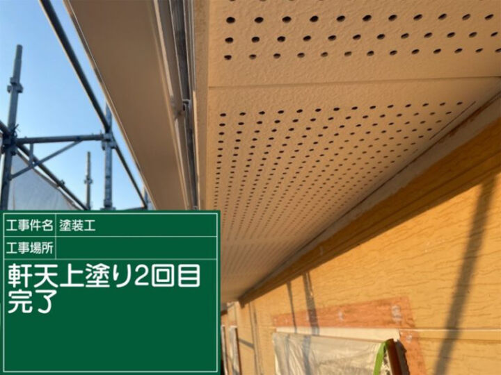 同じ塗料を重ね塗りすることで、塗膜の厚みをつくり、軒天をしっかり保護します。