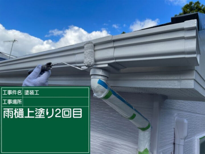 雨樋はポリ塩化ビニル樹脂製で、非常に耐久性があり、塗り替えなど必要ない部材ですが、一棟まるごと塗り替えるので、そのままだと色あせが非常に目立ってしまいます。
