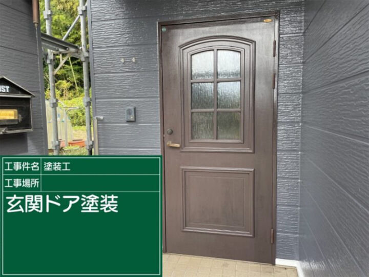 玄関ドアの塗り替えの完了です!艶が生まれて新品のようです!