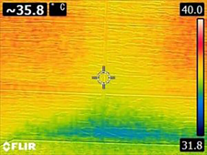 温度が可視化されるカメラで撮影すると、外壁のどこに結露ができているかわかります。