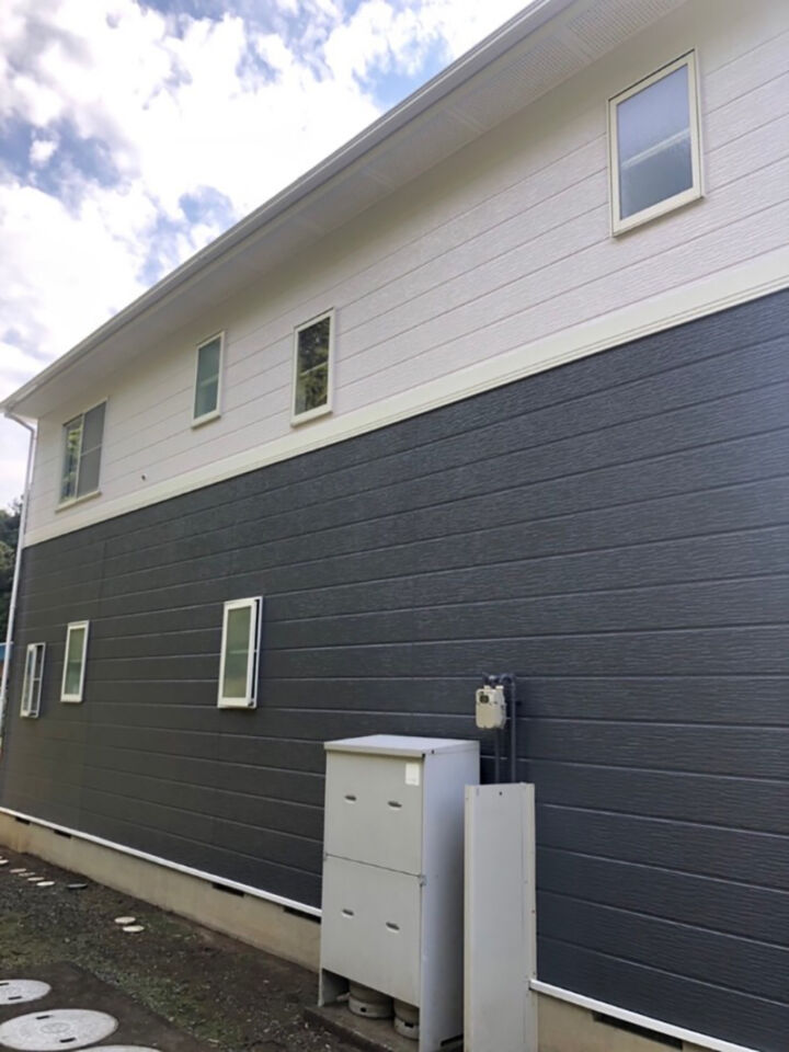 外壁はツートンカラーの窯業系サイディングで施工されています。