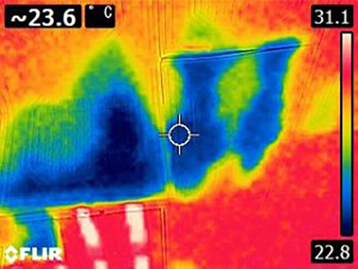 湿気や水分が溜まっていると温度が低くなるので、ここが雨漏り箇所ということがよくわかります。
