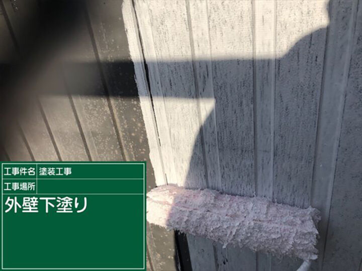 下塗りは外壁材と上塗り塗料の密着性を高めるためにおこないます。