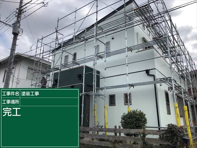 写真は塗装工事のために足場をたてたところです。
