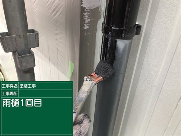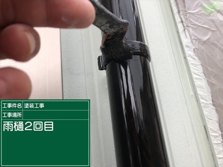 雨樋も破風板と同じく「フッソUVコート」を塗っていきました。