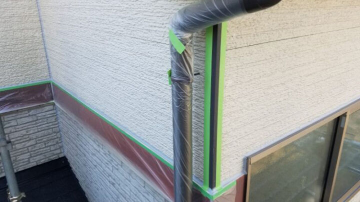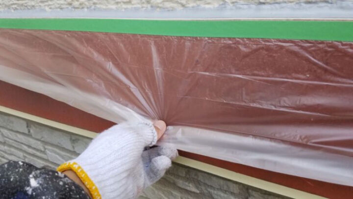 塗料が飛散し汚れないように、養生を行います。
