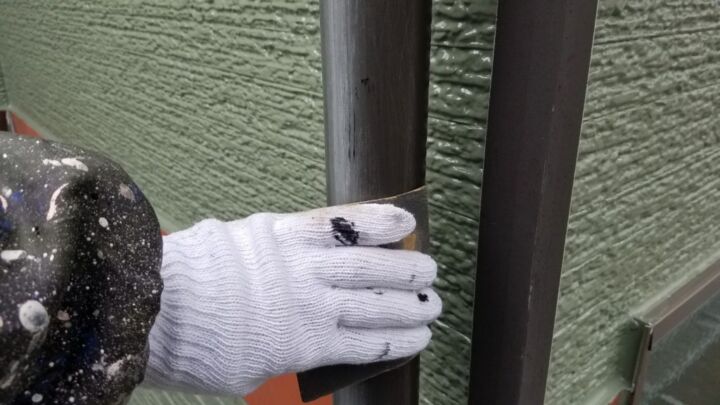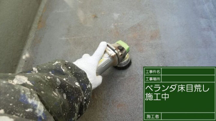 まず、サンドペーパーや研磨用たわしでケレンをかけて目荒らしします。