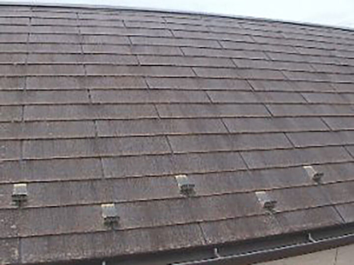 コロニアル材の屋根が色あせて劣化が進んでいます