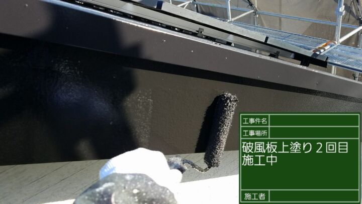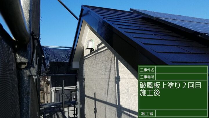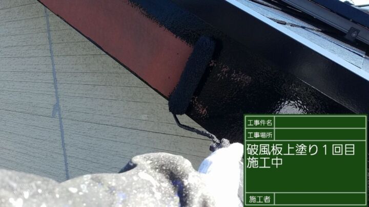 破風板、軒樋ともに1回目の塗装が完了です。