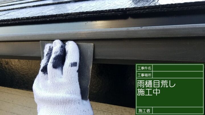 破風板と軒樋は似たような位置にあるので一緒に塗装します。