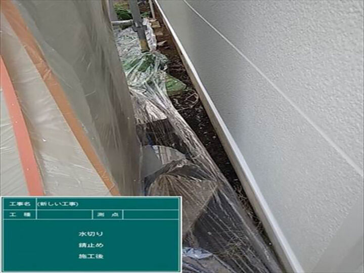 タスペーサーと呼ばれる道具を使い、縁切り作業を行います。雨水の逃げ道や風の通り道である隙間を塞いでしまわないようにする作業です。