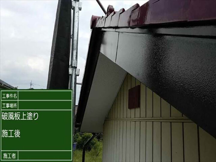 上塗りが終わり、破風板の塗装が完了しました!