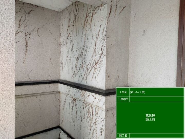 ツタの根本には除草剤を撒くことで再度の繁茂を防ぎます。