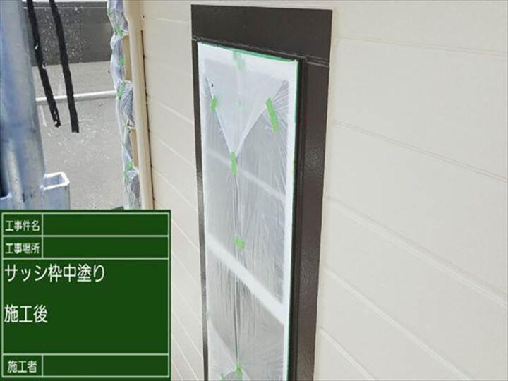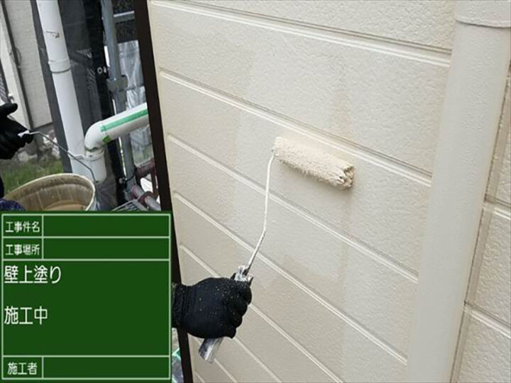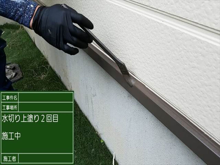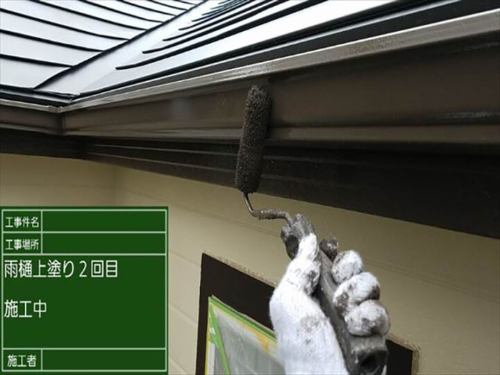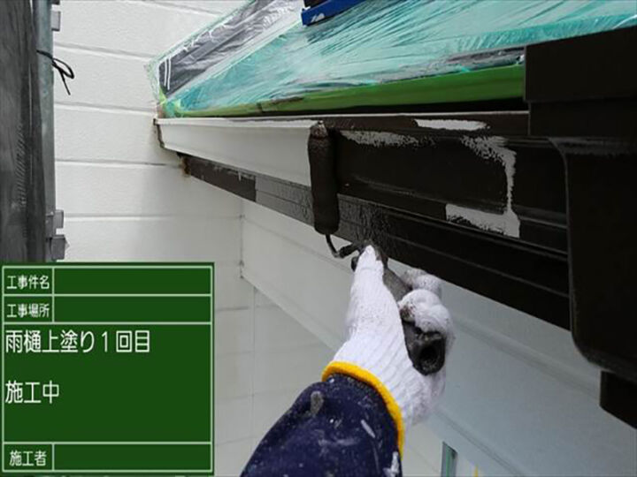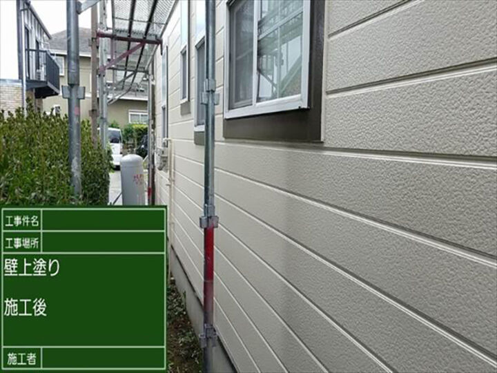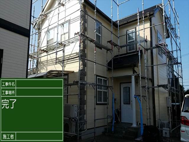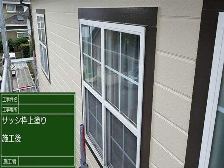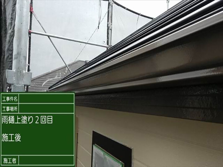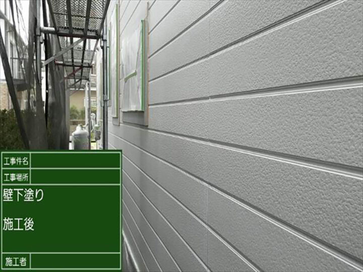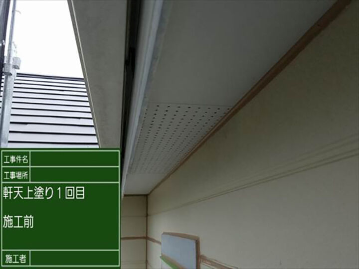 - 《外壁》サーモテックシーラー(下塗り)、シリコンフレックスⅡ/ペールビスケット(上塗り) 《軒天》アクリルシーリング(補修)、マルチエースⅡ(上塗り) 《破風板・水切り・雨樋》マルチプライマーエポ、フッ素UVコート(カラーボンドアイアンバーグ)