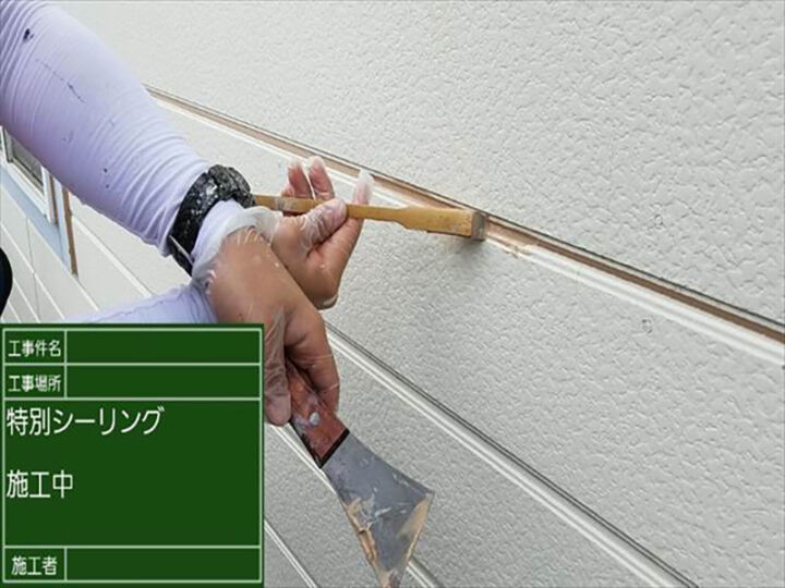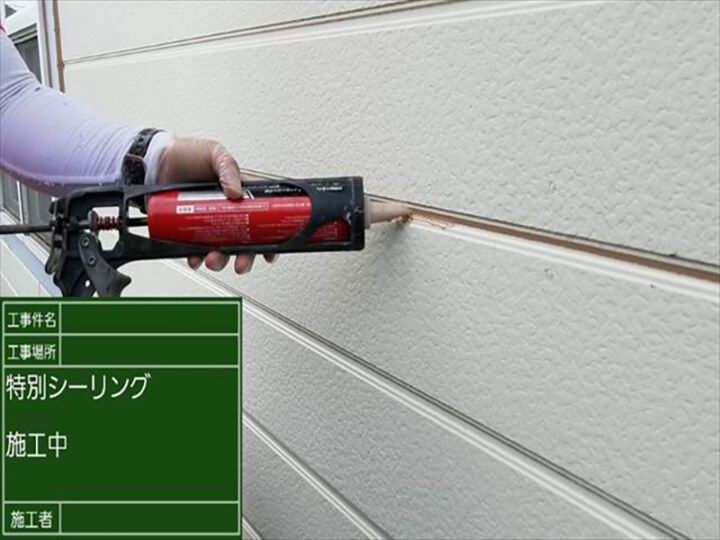 今回外壁材の色が「ペールビスケット」というクリームベージュ系の色のため、シーリング材の色も合わせていきました!