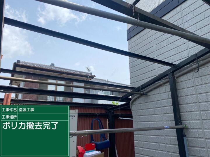 ポリカ波板が取り外されて骨組みだけになりました‼️