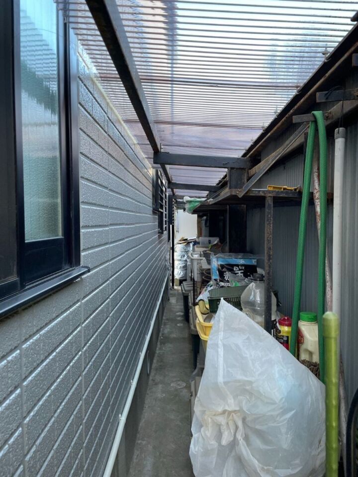 お客さまの大事なものが濡れないようにと設置したポリカ波板屋根も放置すると、雨風をしのげなくなってしまうので、変色が見られたら定期的に交換して維持していきましょう‼️