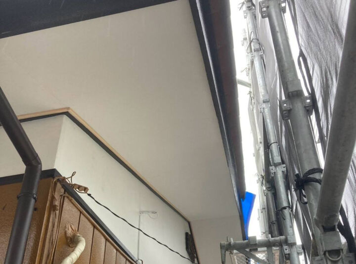 カビに強いマルチエースを使用して軒天のケイカル板全体を塗っていきました👷♂️