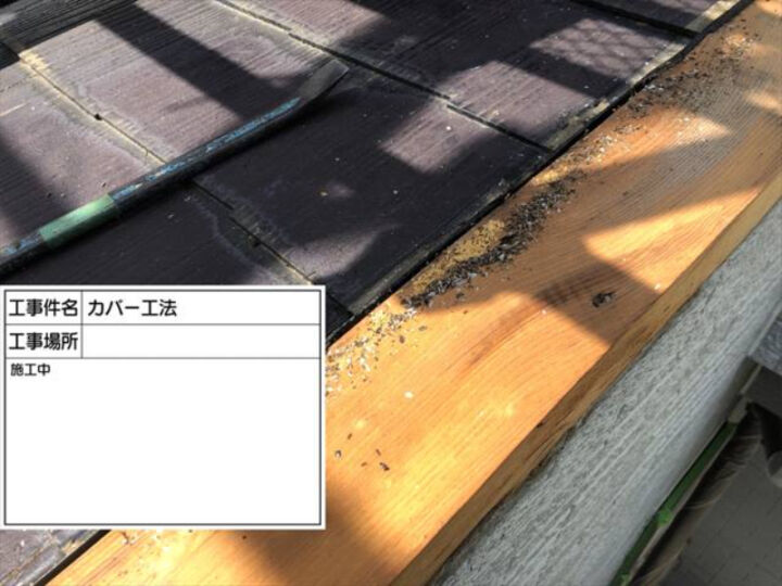 スレート瓦やアスファルトシングルの屋根で、屋根下地の野地板が傷んでいる場合に選択する工法の一つです。