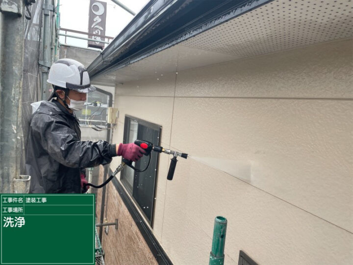 続いて、高圧洗浄機で家屋全体を洗浄します。