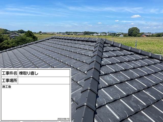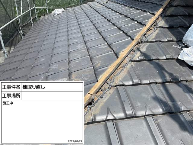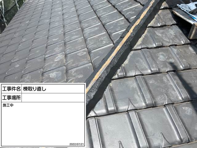 そのため棟積みをしていき、頂点に棟瓦を敷いていきます。