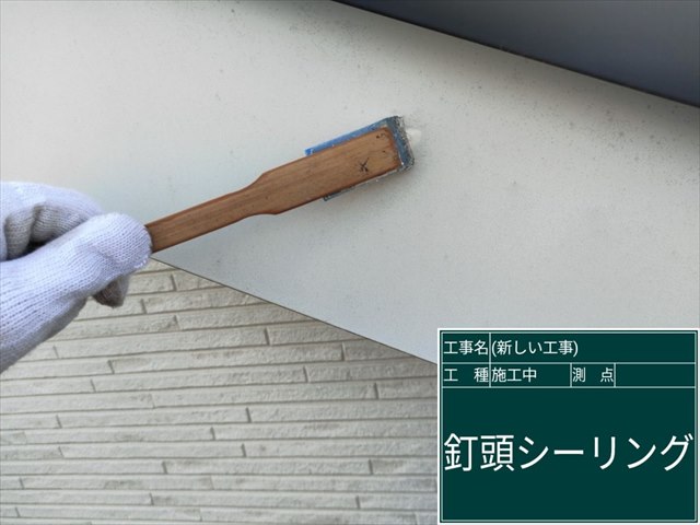 釘頭にシーリングを打ったらヘラで抑えて完了です。