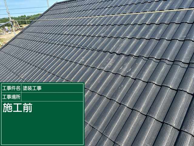 高圧洗浄が終わったかすみがうら市現場のモニエル瓦の屋根です。