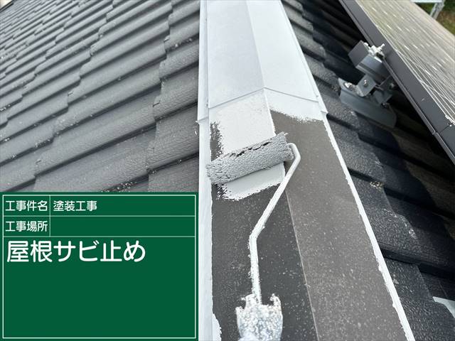 かすみがうら市の屋根塗装、補修が終わったので、棟板金の塗装をおこないました。