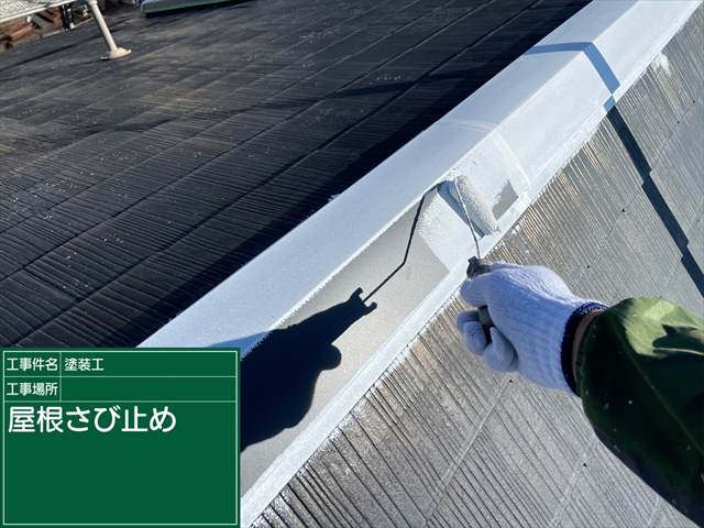 かすみがうら市でおこなった交換した棟板金に、錆止め塗装をおこないます。