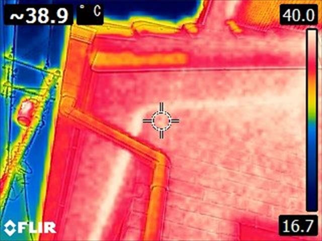 他の部分も劣化が見られないかサーモグラフィーなどでチェックを行っていくと、屋根まわりに温度変化が見られました‼️
