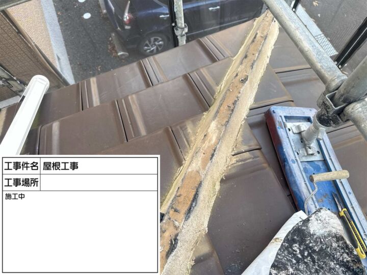 まず、漆喰が傷んでいた棟を取り直していきます🏠️
