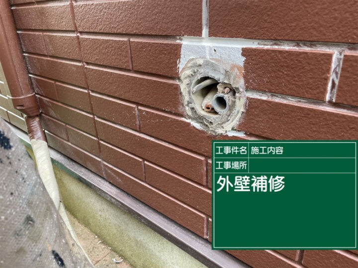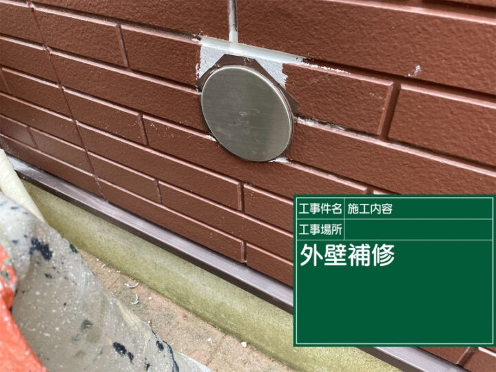 不要となり、外壁にあいた状態となっていた排気口にもカバーをしていきます。