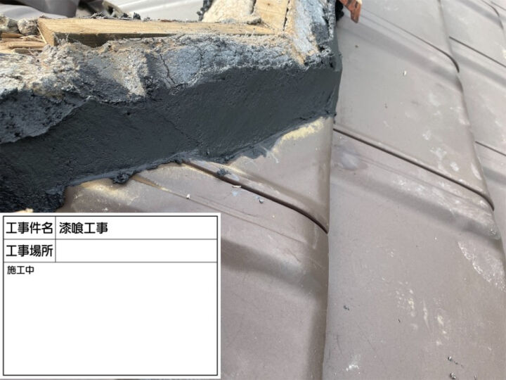 しっかり漆喰で抑えることで強風でも飛ばされないようにしていきます。