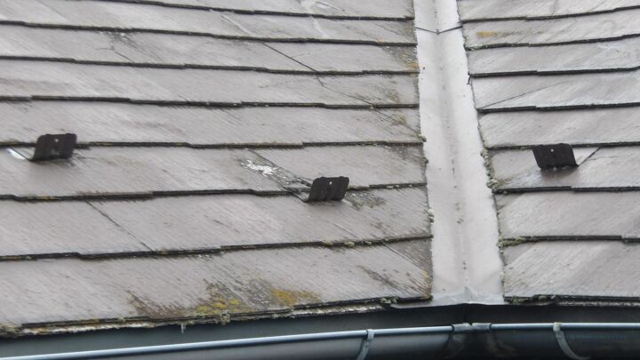 スレート瓦の端っこはボロボロになっていますし、雨染みも屋根全体で起きています☔