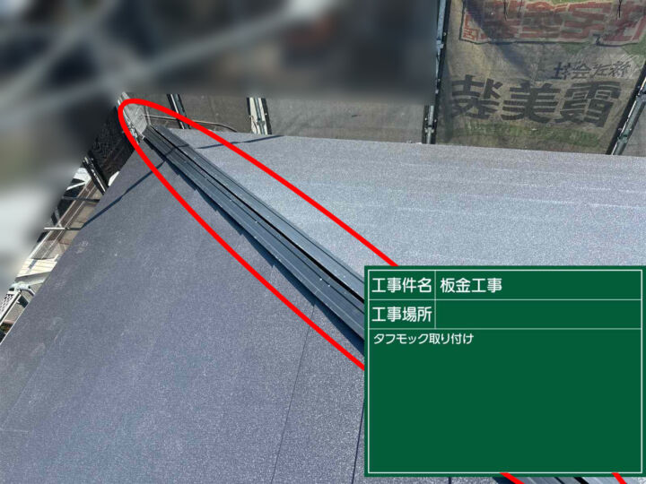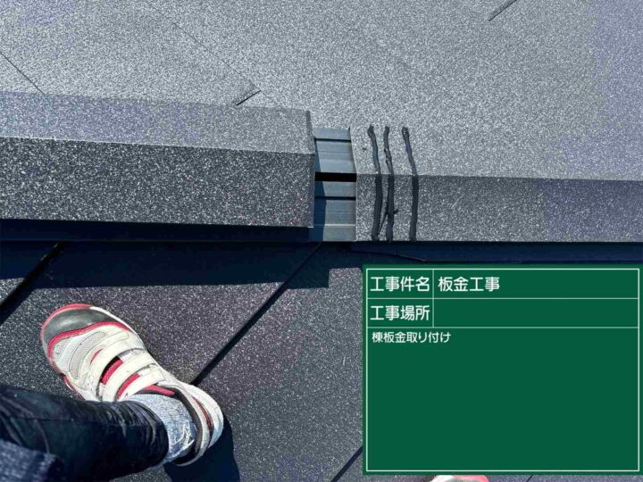 カバー工法では古いスレート屋根の上にゴムアスルーフィングを敷いていくので、棟が出っ張っていると施工できないんです👷♂️