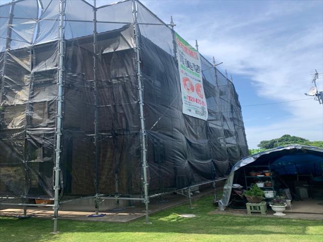 外壁塗装をおこなうまえに、足場の設置をおこないます。