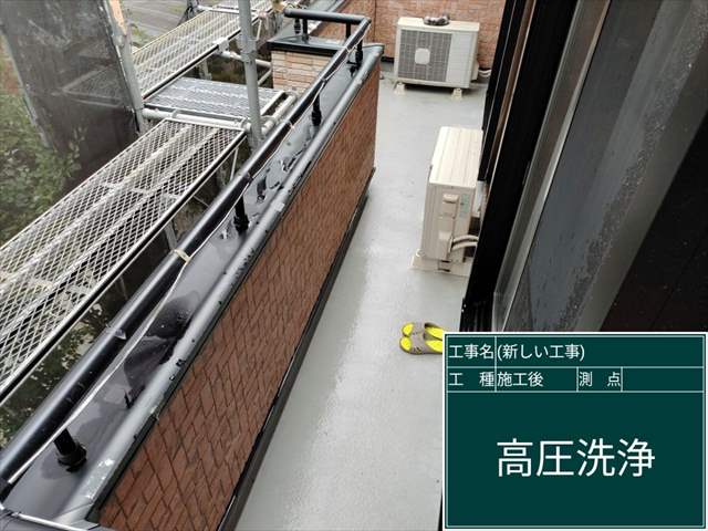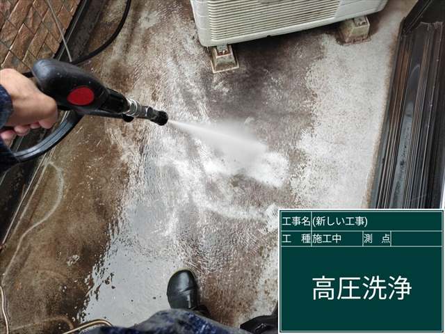 ご紹介の写真が前後しましたが、高圧洗浄は上から下に汚れが流れていくようにおこなっています。