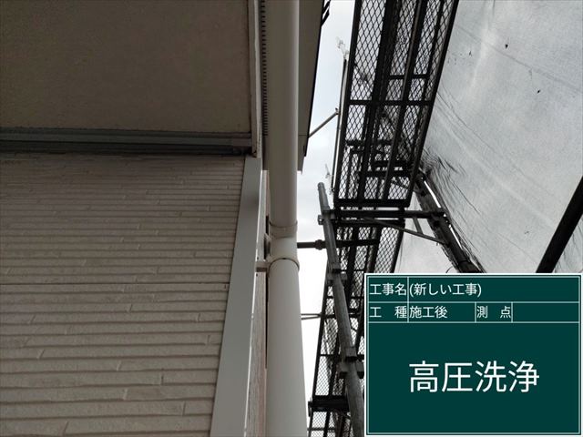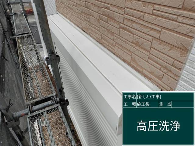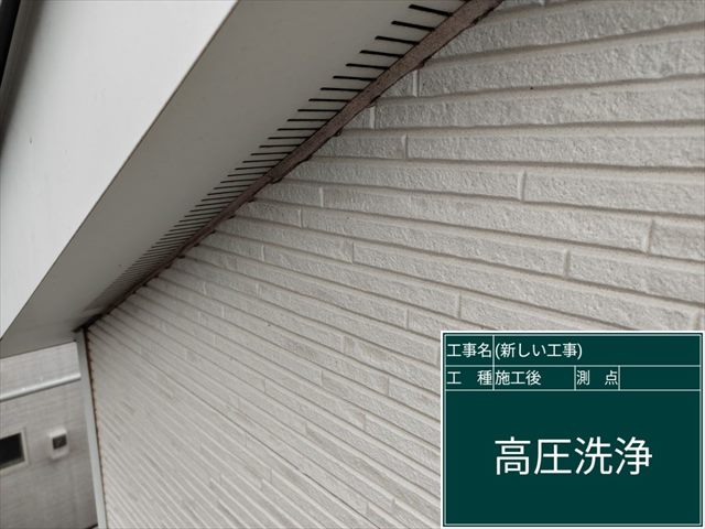 続いて外壁の高圧洗浄、1階の軒樋、外壁、、と順を追って綺麗にしていきます。