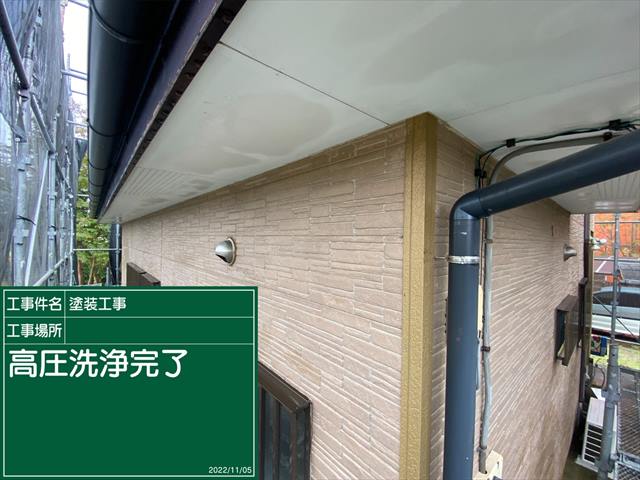 こちらは塗装をおこなわないのですが、せっかく塗装をするので建物全体がキレイな状態であればと高圧洗浄をおこないました。