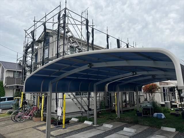 足場の専門業者さんに、塗り替えに適した足場を建ててもらいます。