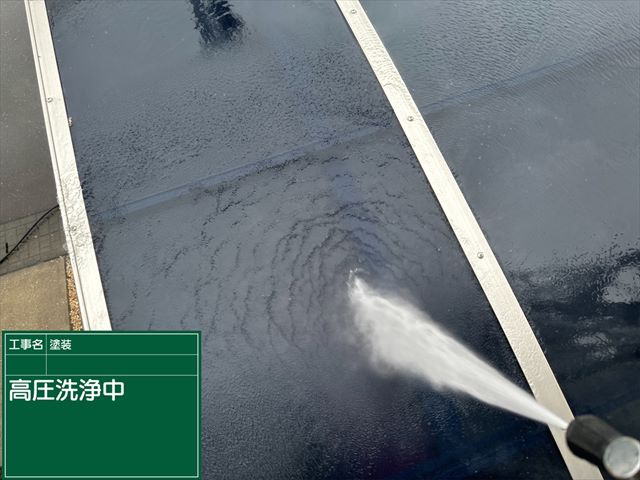 塗装をしないカーポートの屋根も洗浄していきます