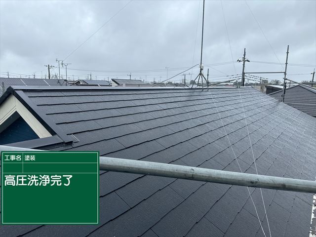 苔がこびりついていたスレート屋根も高圧洗浄で綺麗になりました。