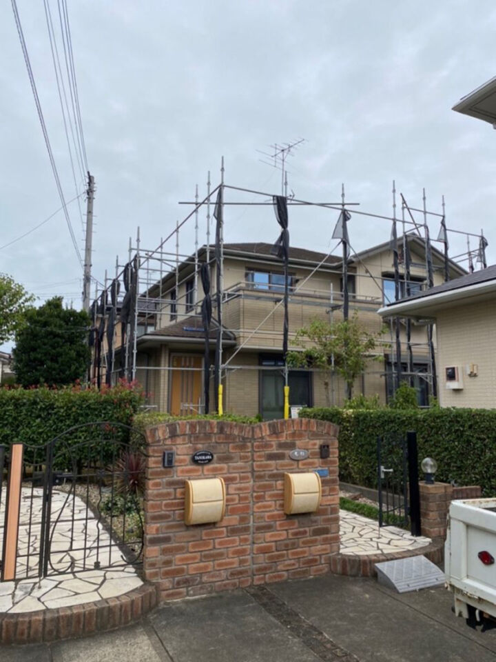 石岡市、施工前に必要不可欠な足場設置・高圧洗浄工事のご紹介です